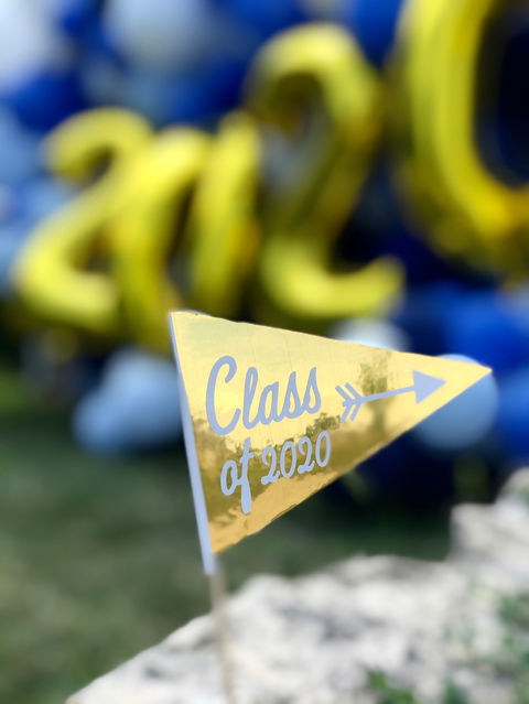 LDS consulted, designed and fabricated the party theme based on the graduate's high school mascot (the arrow) and her college's mascot (the mountaineer).